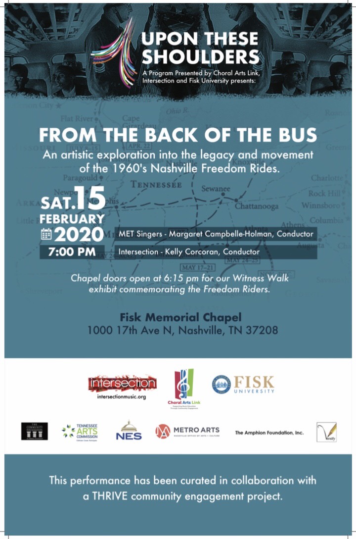 Choral Arts Link, Fisk University and Intersection continue their collaborative effort that began in 2017 with Upon These Shoulders. This event takes place on February 15, 2020, at 7 pm in Fisk Chapel on the campus of the historic Fisk University. “From t